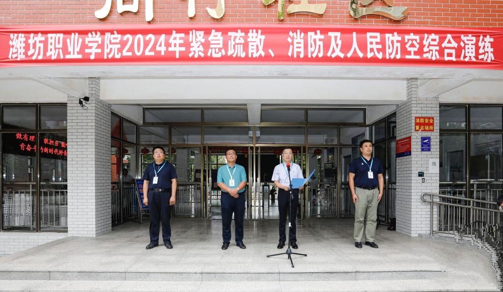 9月14日下午,学院在滨海校区、奎文校区同时举行2024级新生紧急疏散、消防及人民防空综合演练活动。学院党委副书记韩瑞东,党委委员、副院长任培华出席活动。团委学生工作处、安全保卫处负责同志,各二级学院党总支书记、分管学生工作负责人、辅导员及2024级全体新生参加了本次演练活动。