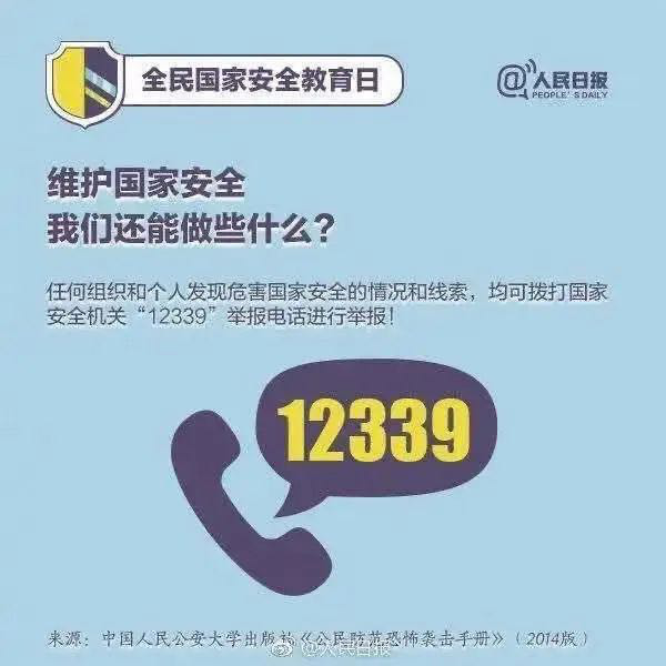 任何组织和个人发现危害国家安全的情况和线索,均可以拨打12339向国家安全机关举报。